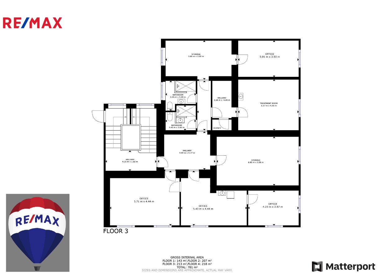 Celková užitná plocha nemovitosti cca 800 m², jedno podzemní a tři