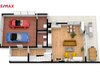 V přízemí domu je prostorný obývací pokoj s kuchyňským koutem a