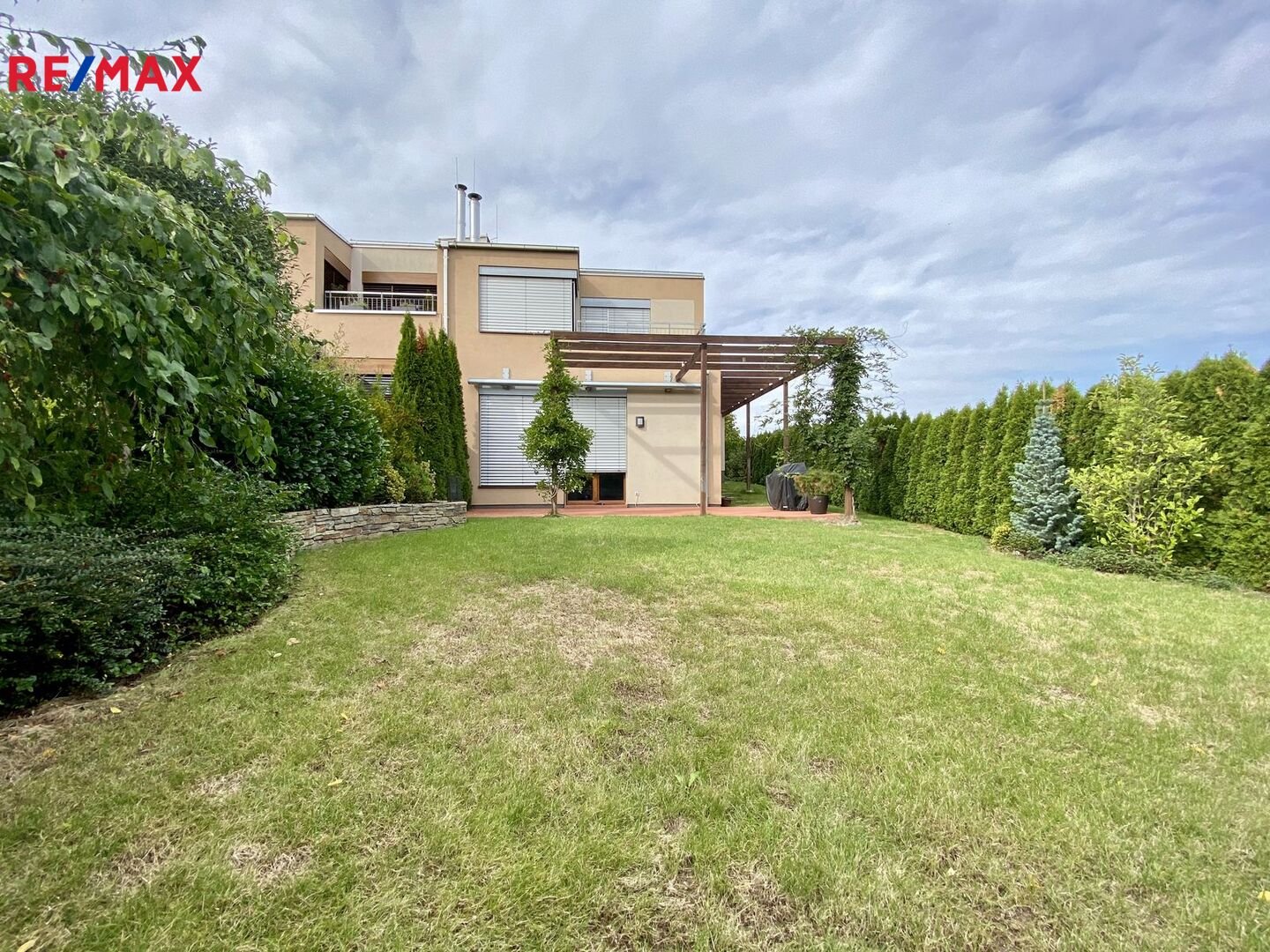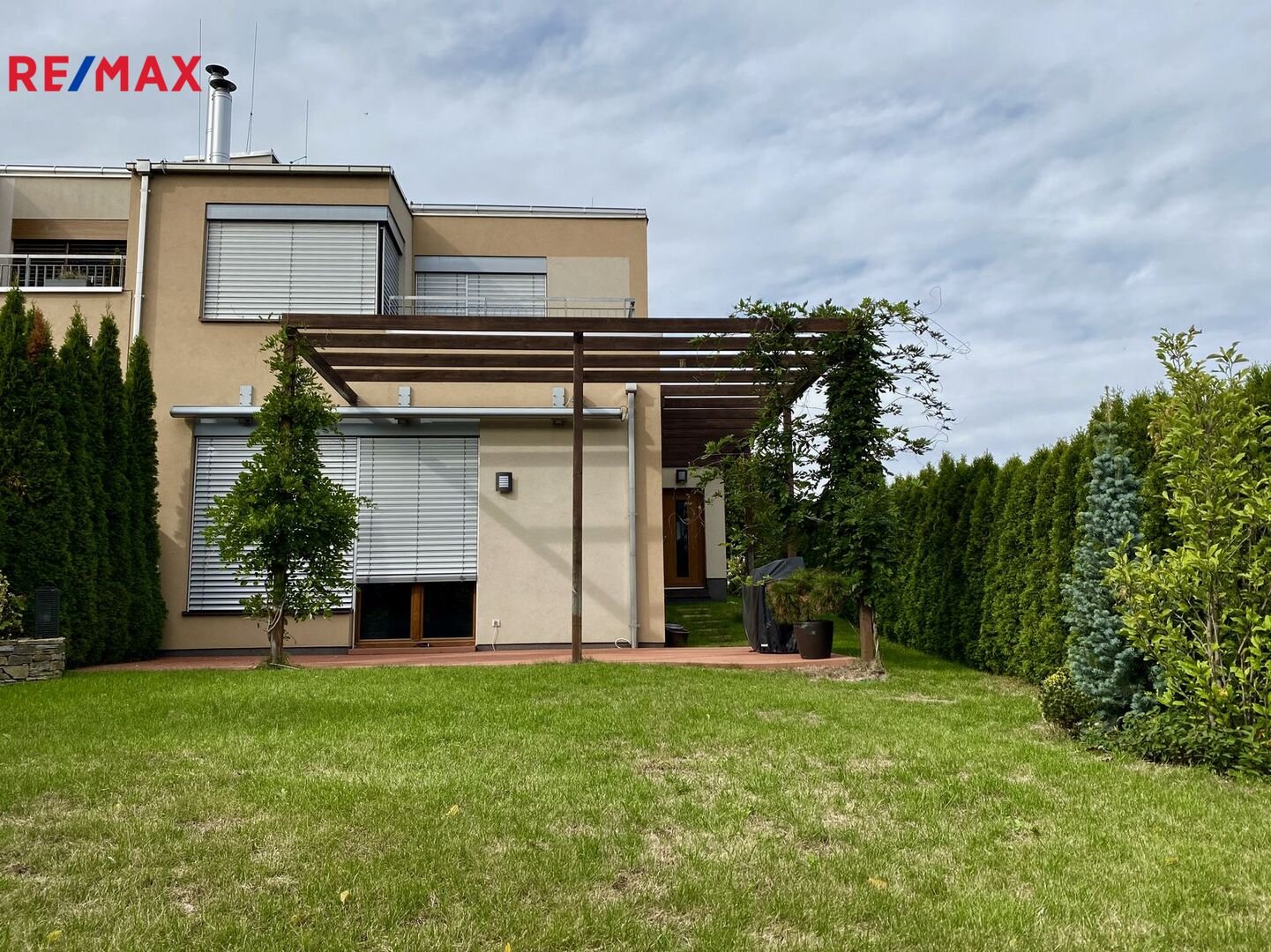 vestavěnými spotřebiči. Terasa s pergolou a automatickou markýzou bude