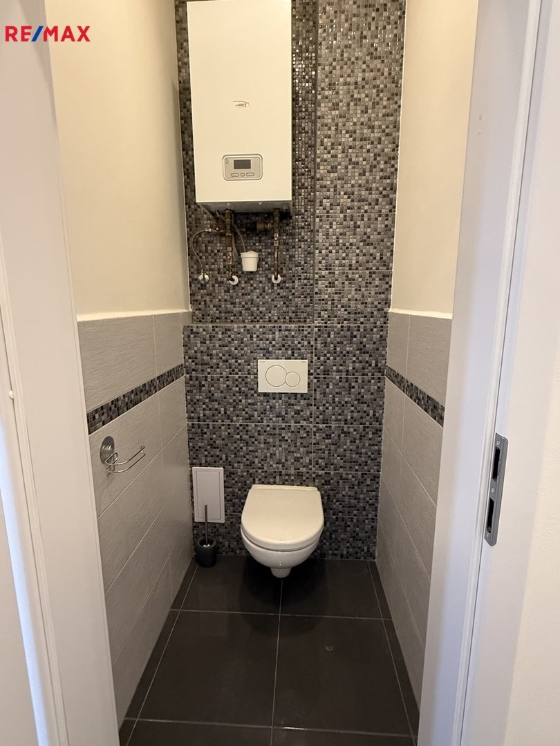 koupelna (4,8 m²), samostatná toaleta (1,3 m²) a chodba (12,2 m²).