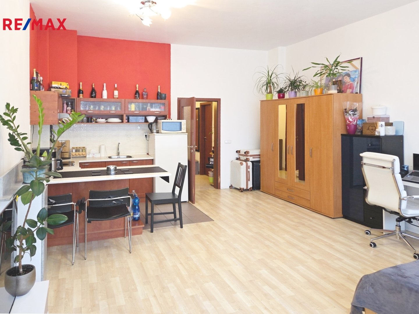 spotřebiči, lednicí, pračkou i nábytkem (postel, skříň, komoda), takže