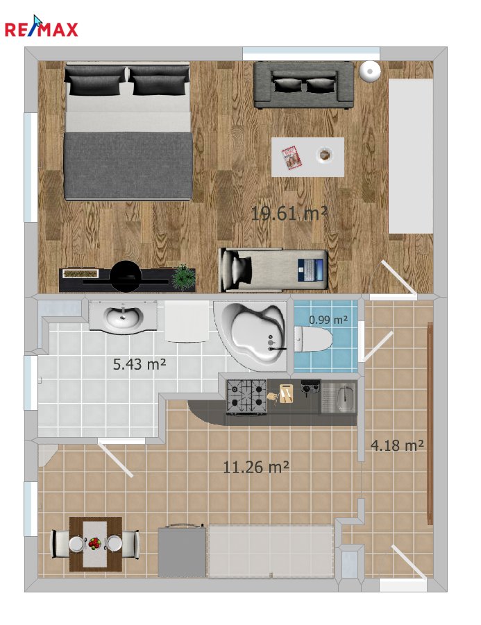 Tento byt o dispozici 1+1 a užitné rozloze 42 m² + 3 m² sklep, prošel