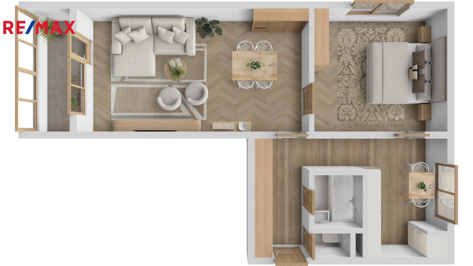 • Dispozice: byt má dva neprůchozí pokoje a samostatnou kuchyni.