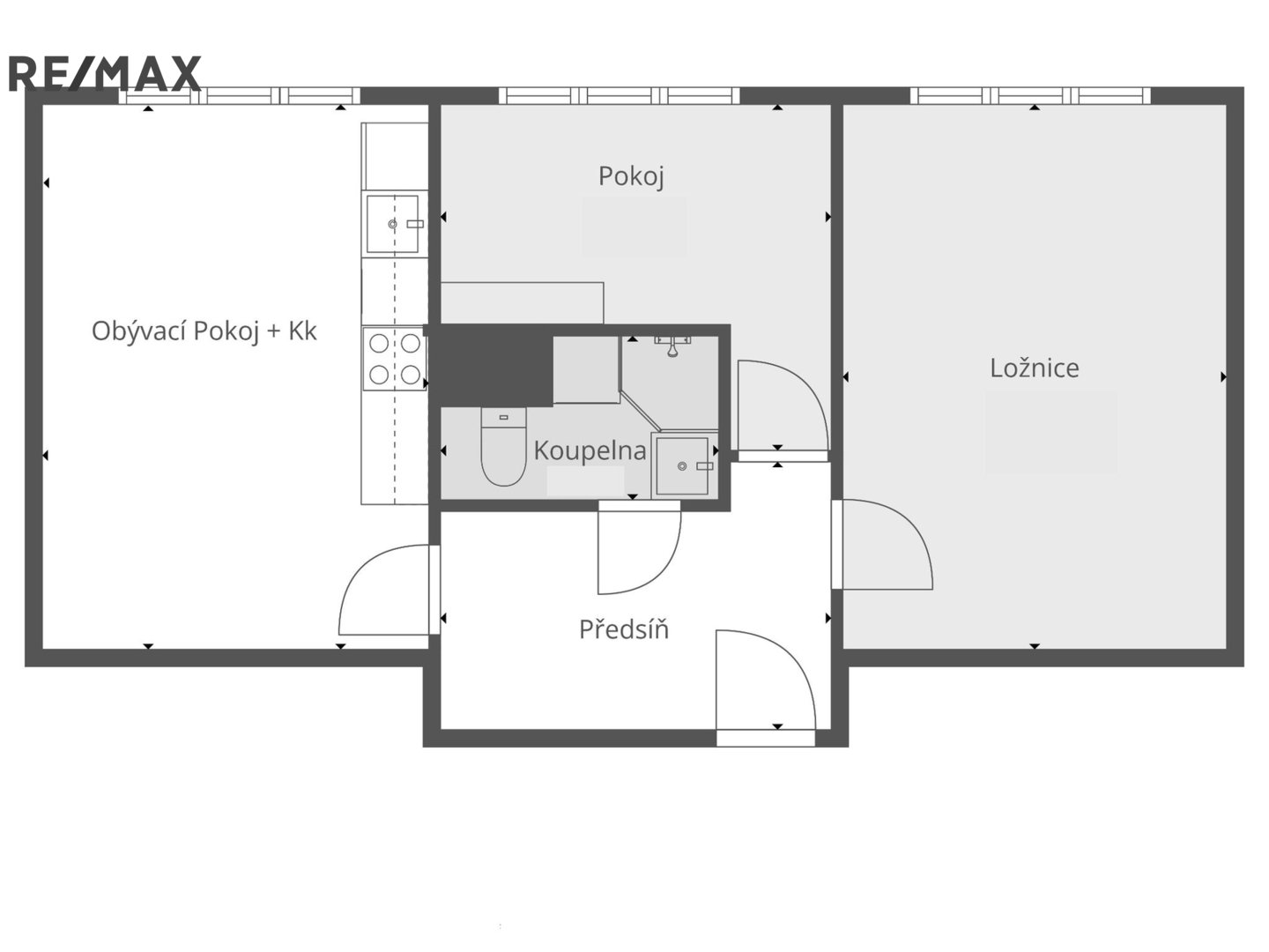 - koupelna se sprchovým koutem, toaletou a umyvadlem