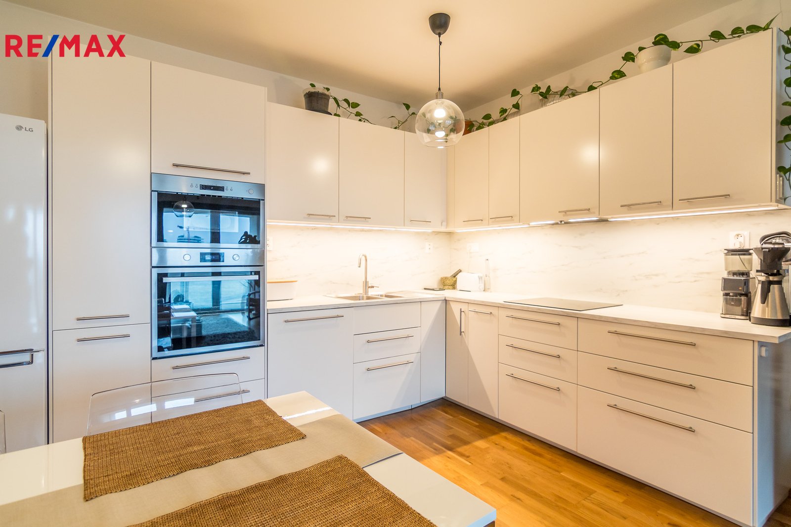 - moderní a nadčasová kuchyňská linka s vestavěnými spotřebiči