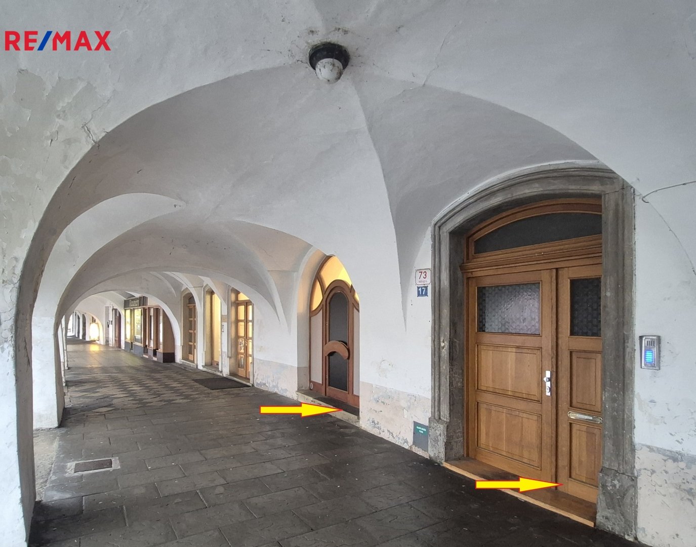 dříve zde byl menší obchod. Prostor má přístup z podloubí přímo
