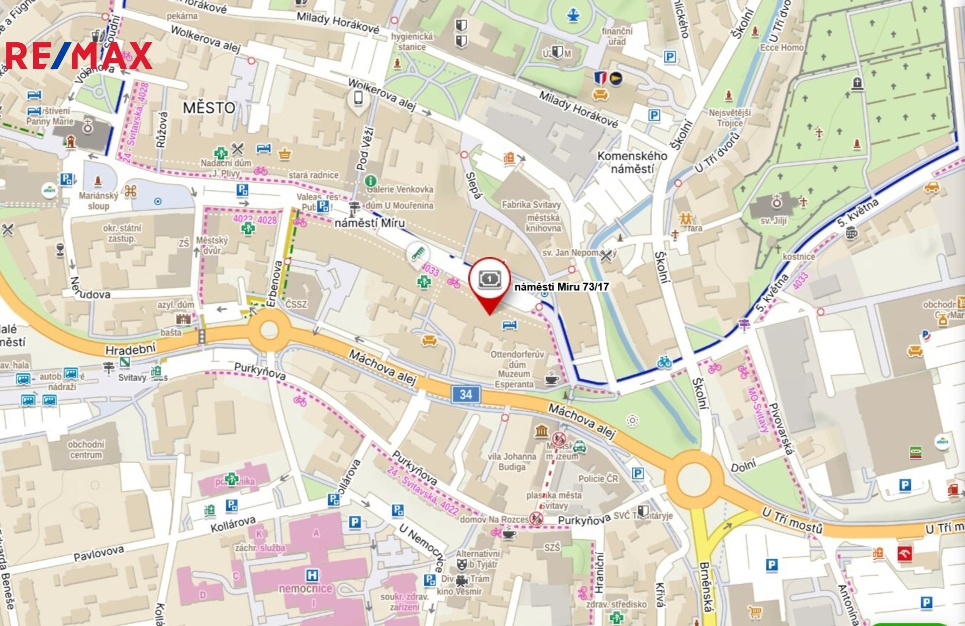 nachází přímo na náměstí Míru v části obce Město ve Svitavách.