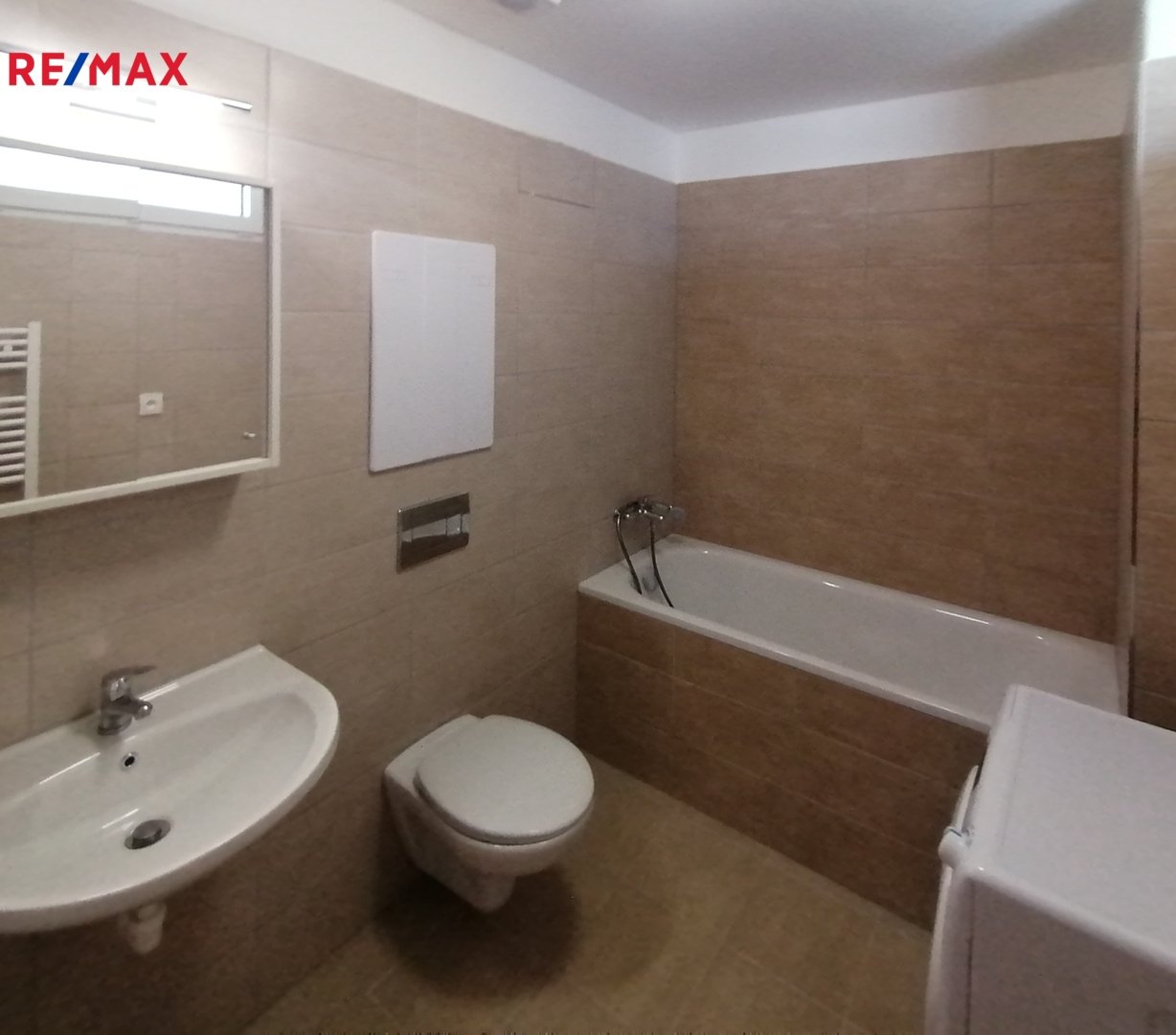 Sociální zařízení je vybaveno závěsným WC geberitem, vanou, umyvadlem,