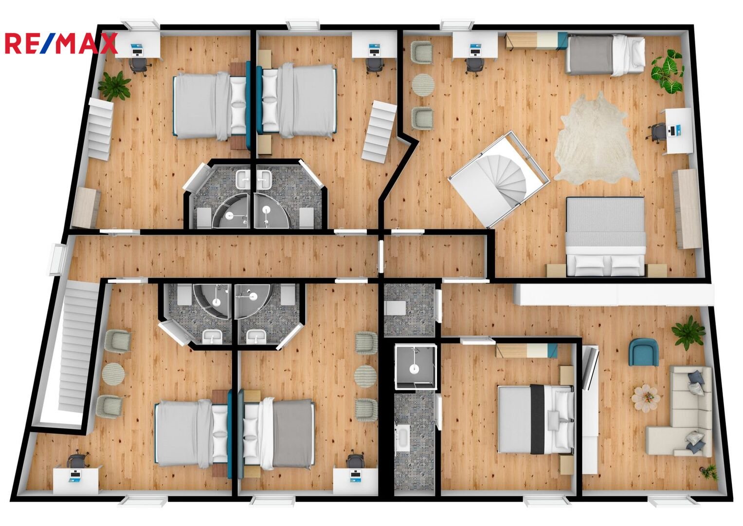 Nemovitost má dva samostatně oddělené hlavní vchody a příjemně vás překvapí svojí celkovou plochou 934 m2.