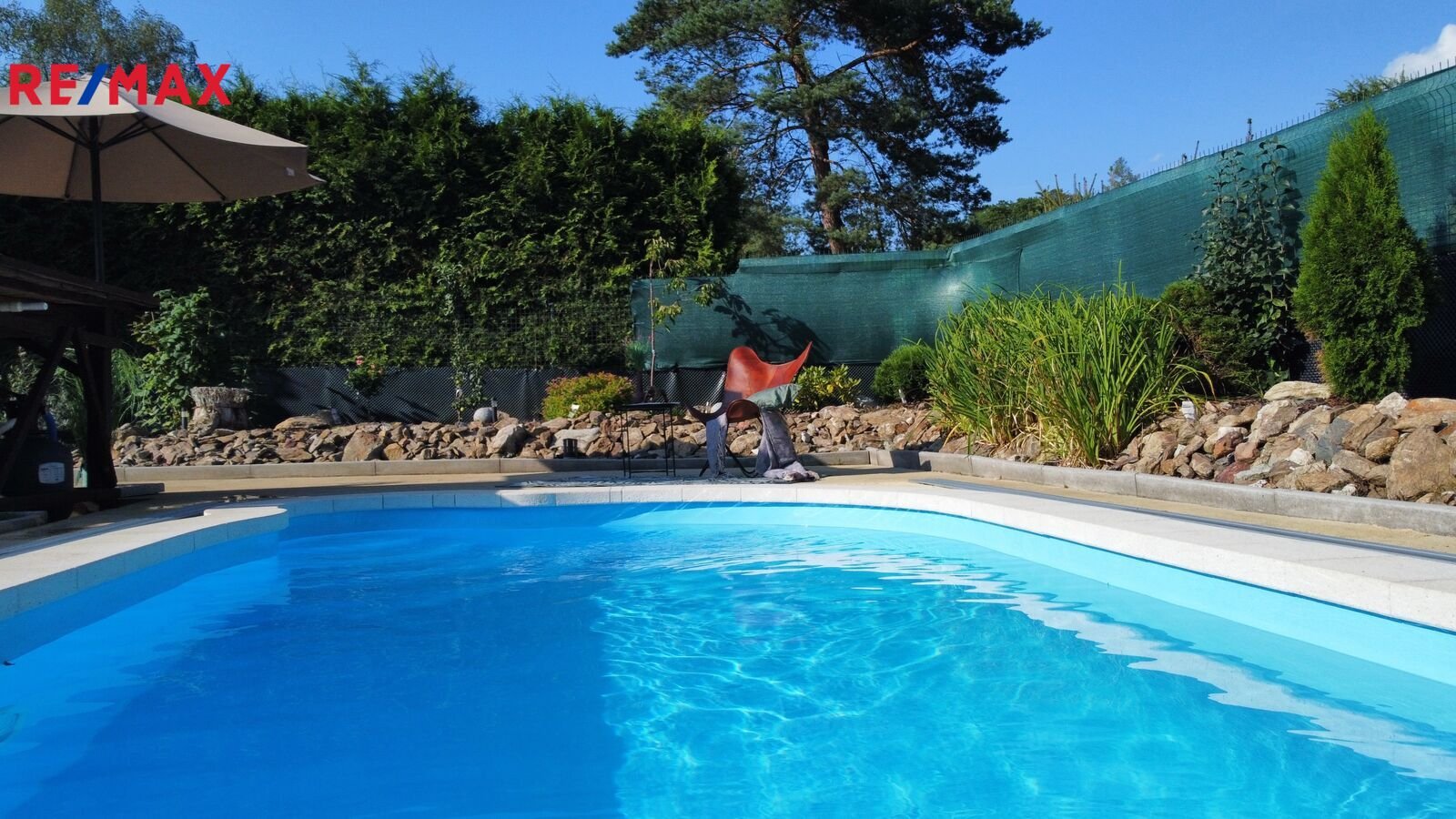 Vlastní příjezdovou cestou po průjezdu plně automatickými vraty se dostanete na zpevněné parkoviště za domem. Brána má i samostatné ovládání pro ubytované hosty. Prostorná zahrada vybízí k posezení u krbu pod dřevěnou pergolou, nebo novému využití dle přiložené vizualizace. Vaše hosty jistě příjemně překvapí krytý venkovní bazén o velikosti 18 m2 s integrovaným tepelným čerpadlem.