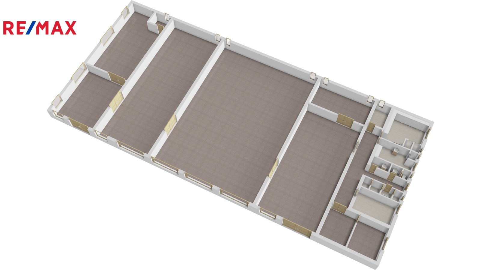 Dispozice objektu: 3 kanceláře pro administrativní zázemí, šatny, sprchy