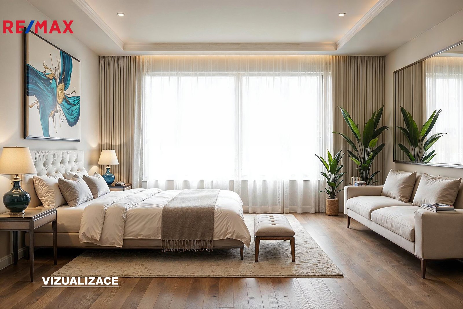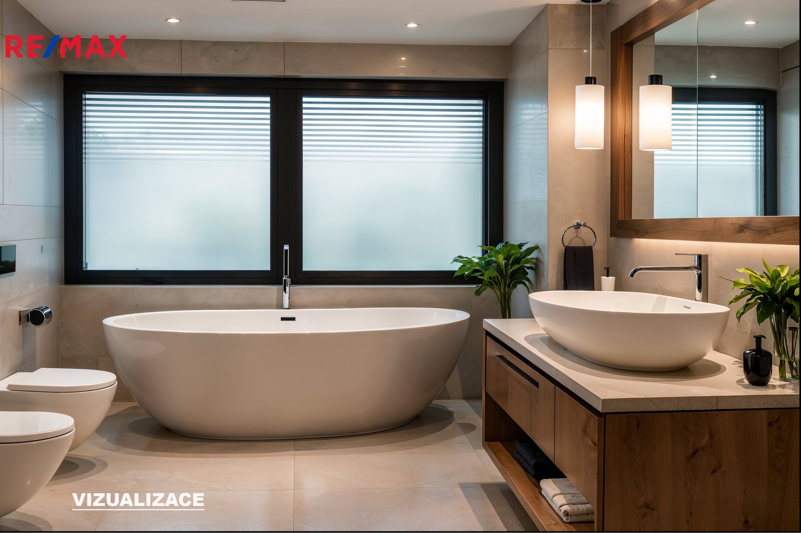 - hlavní ložnice se šatnou a soukromou koupelnou (sprchový kout, WC)