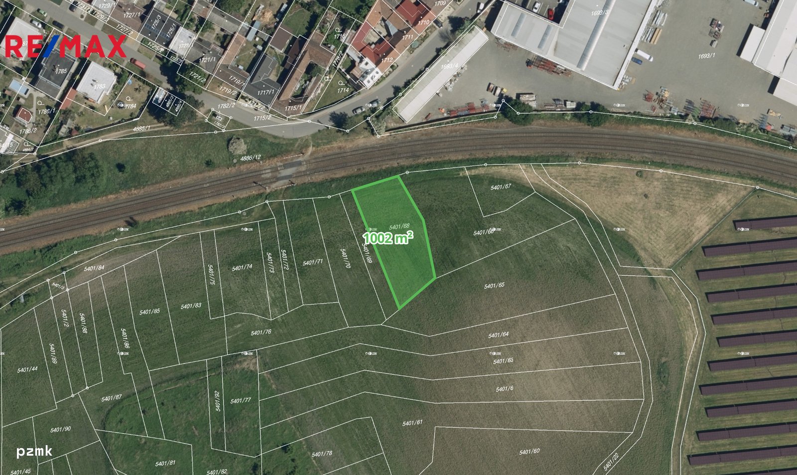 - Parcela č. 5401/68 – orná půda (1002 m2)