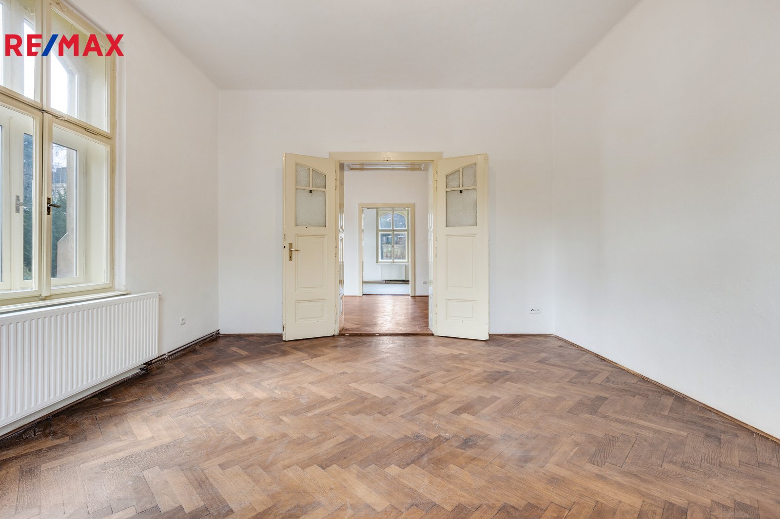 nacházejí původní dřevěné parkety a v koupelně je zachována část