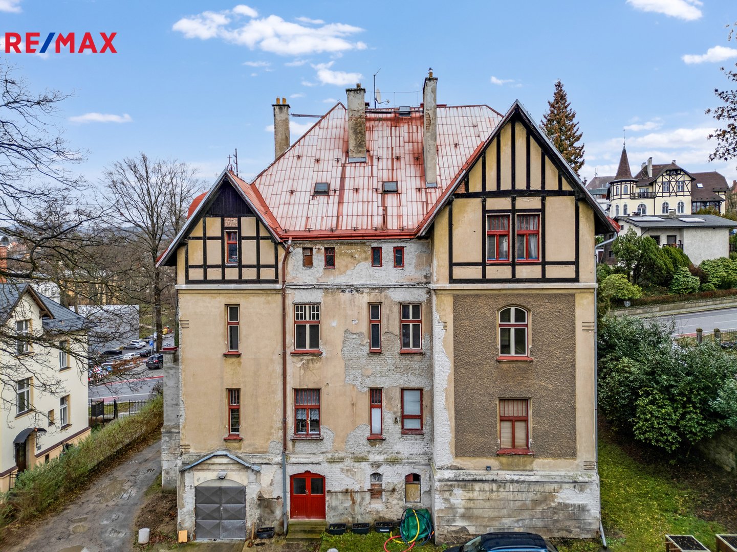 Vítězná, přímo ve Starém Městě v Liberci. Cihlový dům bez výtahu si