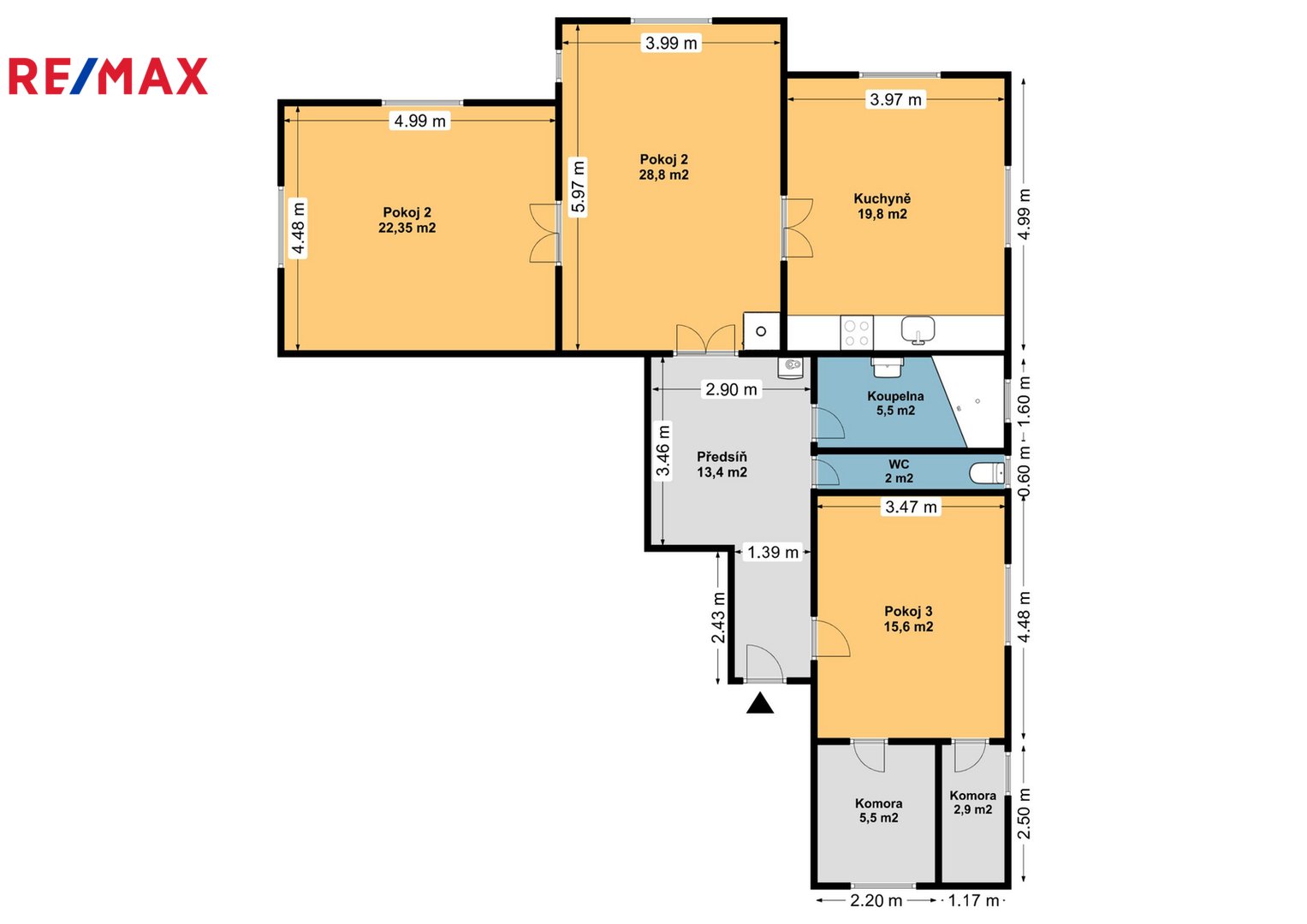 Byt má dle prohlášení vlastníka výměru 114 m², nicméně dle vlastního