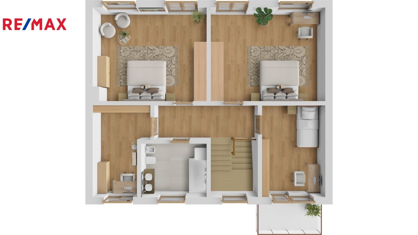 Do patra pak vedou pohodlné schody s podestou. V patře se nachází dva