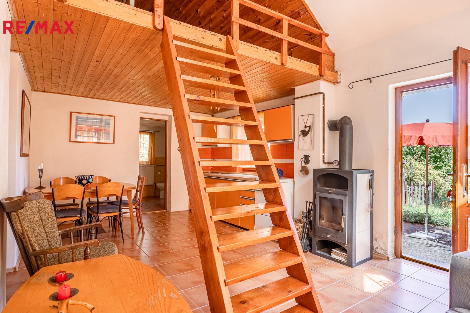V přízemí domu je vybudován prostor na spaní o velikosti cca 12 m² a