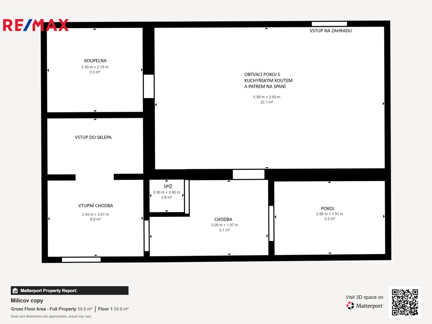 s patrem na spaní a celkové užitné ploše cca 60 m². Chata se nachází