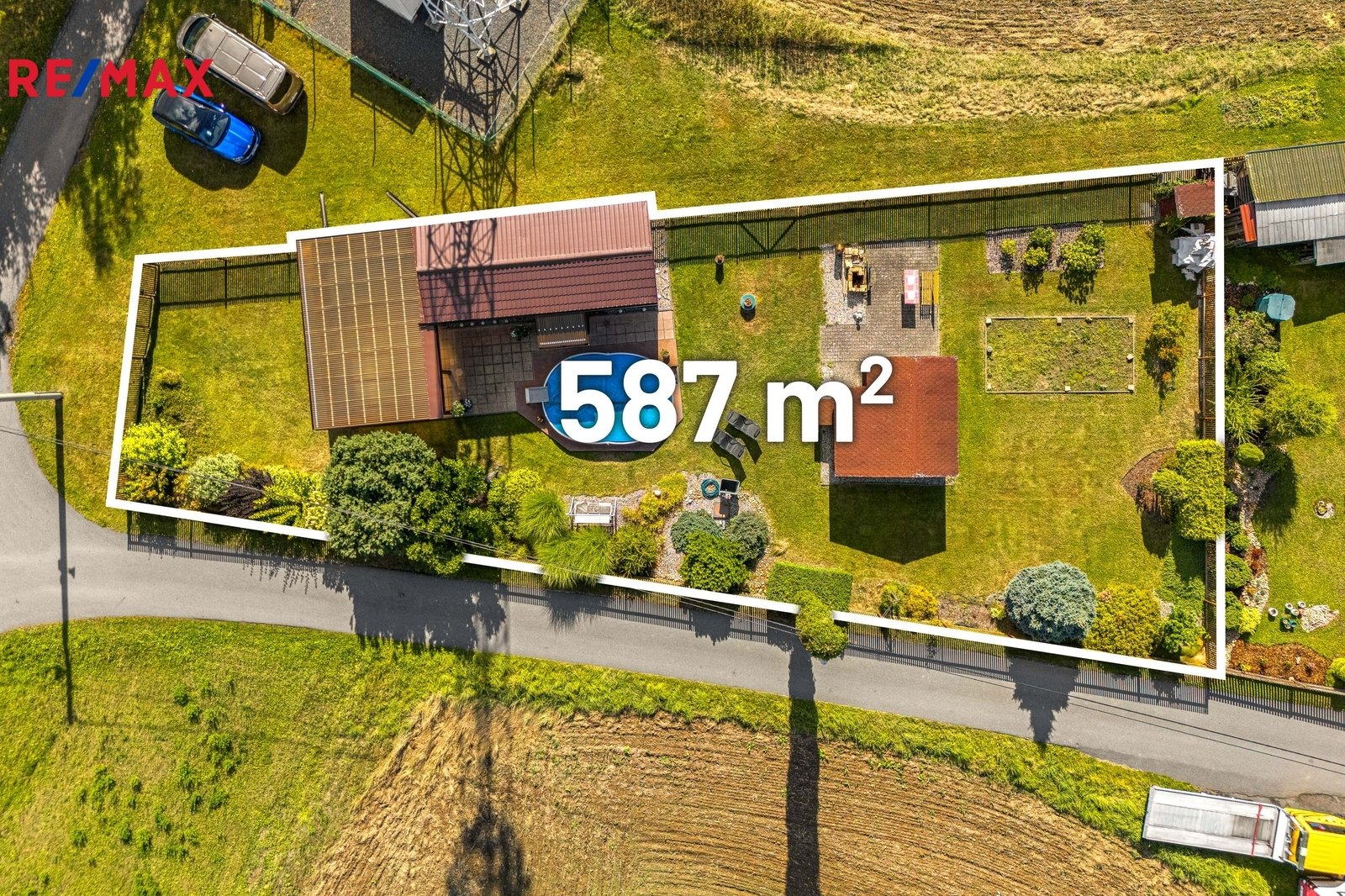 Na pozemku o velikosti 587 m2 stojí rekreační objekt o velikosti 2+kk se