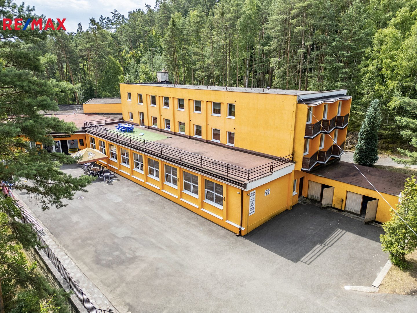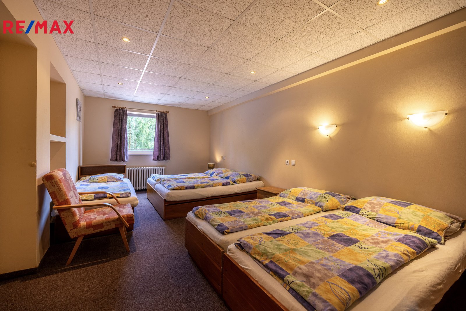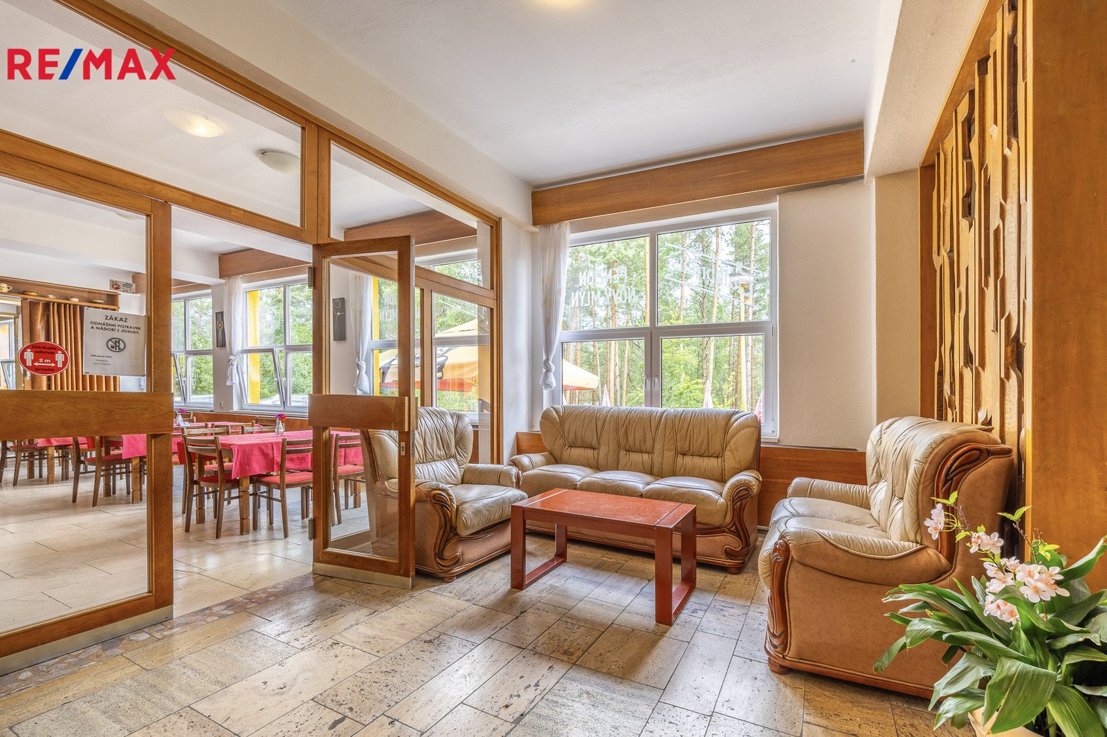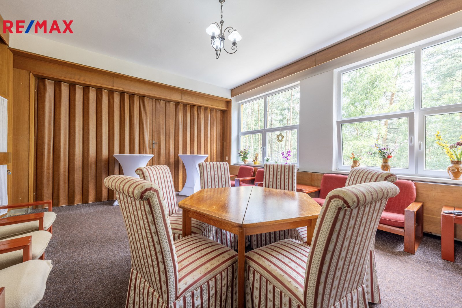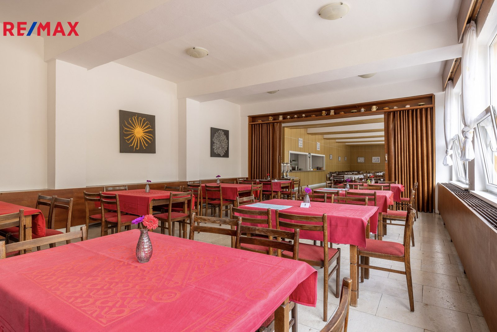 Uvnitř penzionu se nachází vybavená jídelna s kapacitou pro 150 osob,