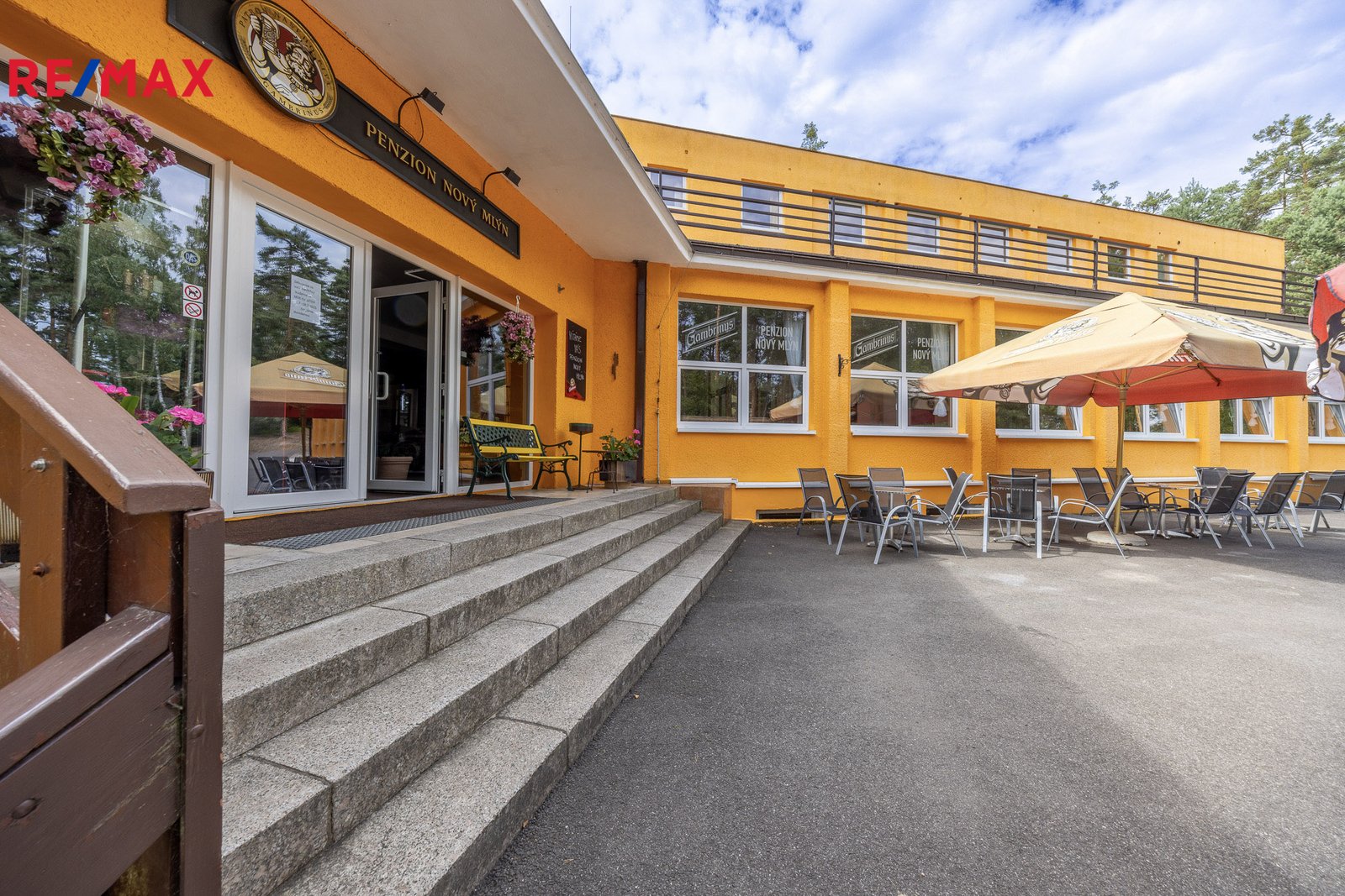 obec Doksy u Máchova jezera. Penzion Nový Mlýn je architektonickým