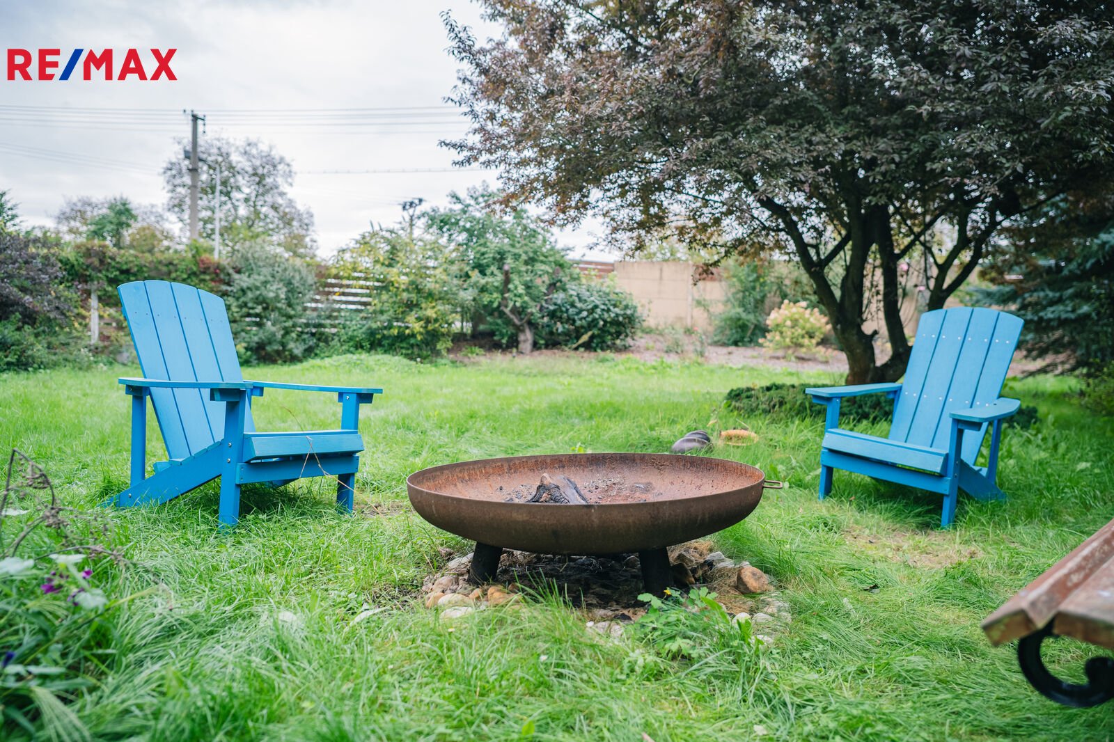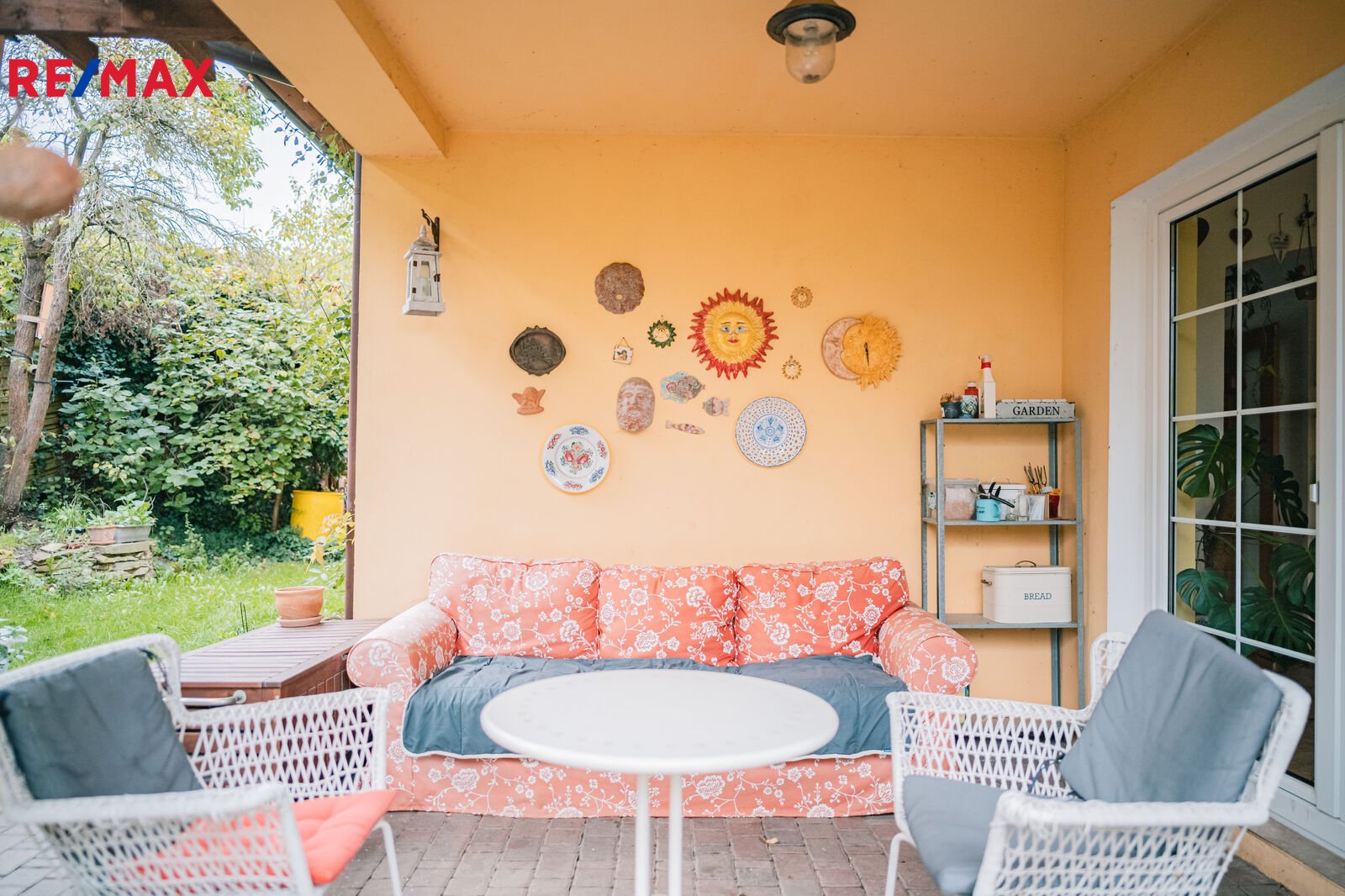 i letní posezení. Nechybí garáž, venkovní kryté posezení ani
