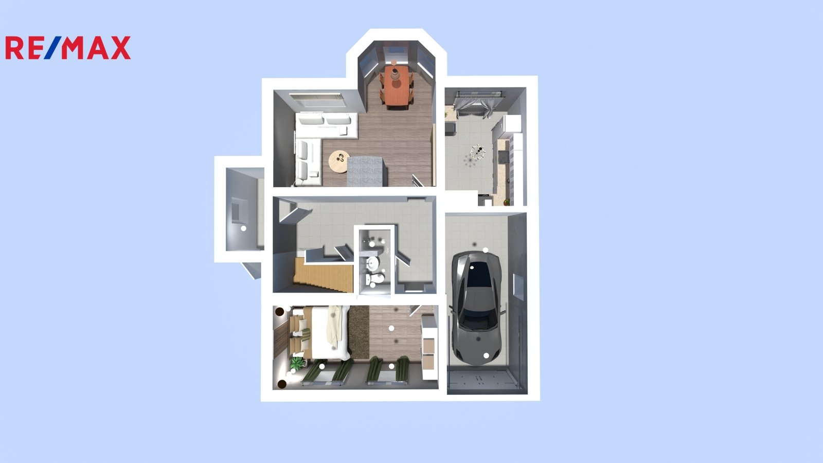 Dům nabízí velkorysý obytný prostor rozložený do dvou podlaží.