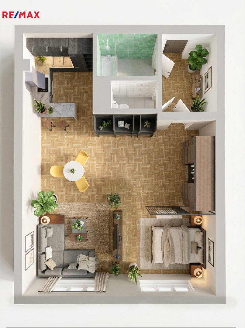 Byt je vhodný pro jednotlivce, pár nebo jako investiční nemovitost