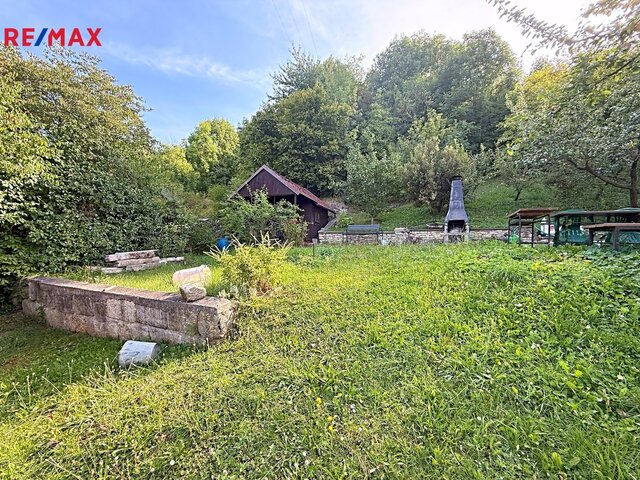 části pozemku je studánka s vodou. Na pozemku je chatka, posezení, kůlna,