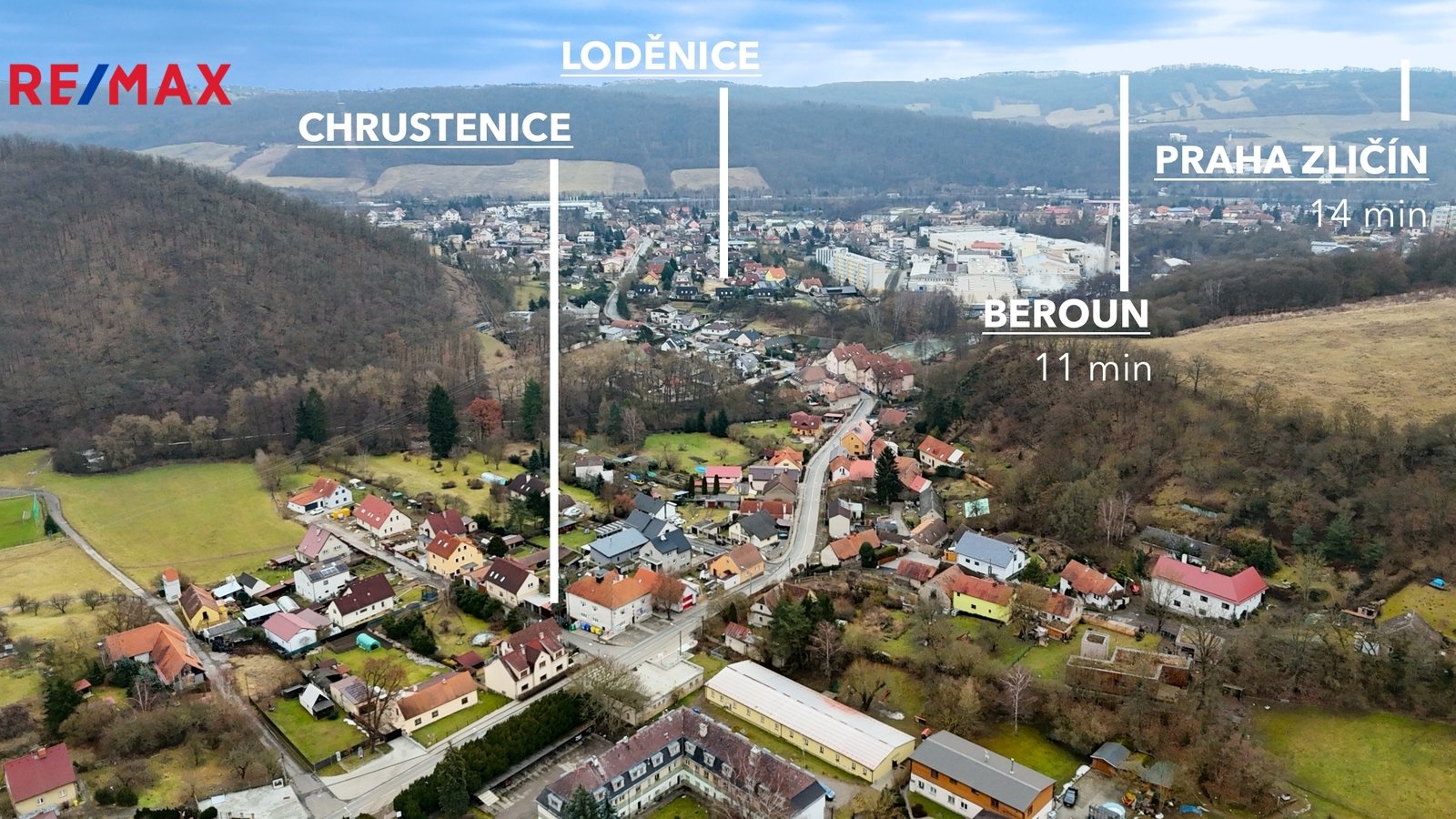 z nedaleké Loděnice nebo autobusem. Město Beroun je doslova za rohem a