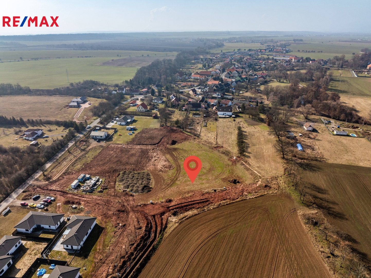 Pozemek se nachází v nové obytné lokalitě. Příjezdová komunikace a