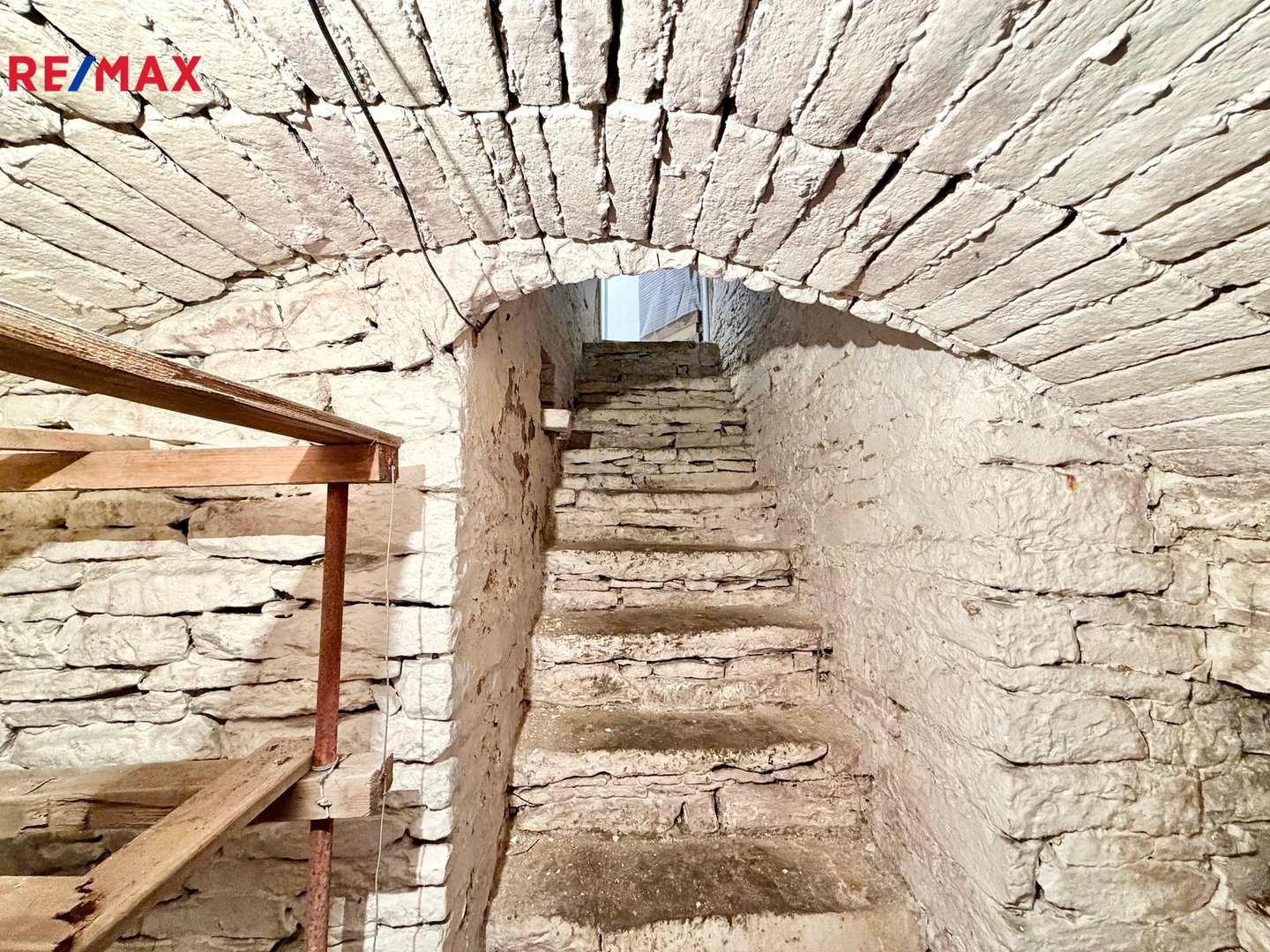 Pod domem je kamenný sklep s plochou cca 6 m2. Z terasy za domem vede