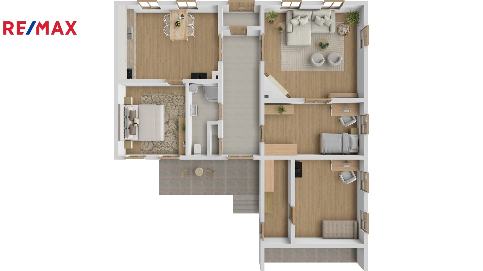energii. Celý dům je provázán vkusnou dlažbou a novými podlahami, které