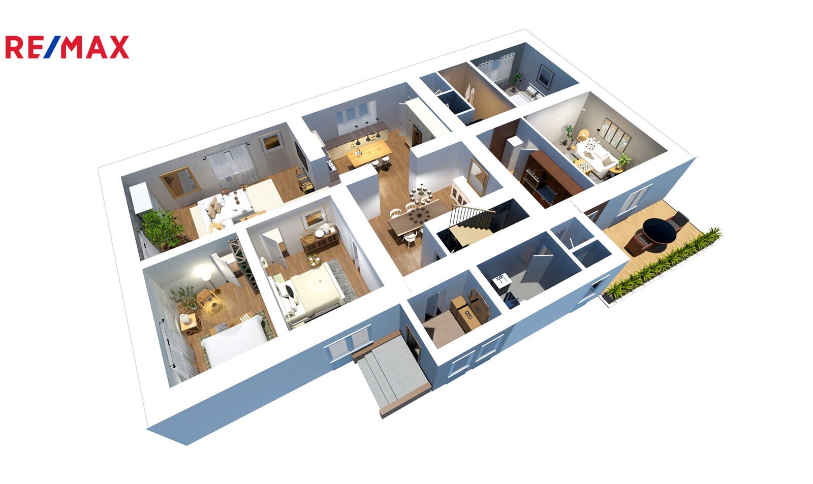 Aktuální dispozice nabízí celkem pět rozměrných pokojů, dvě kuchyně a