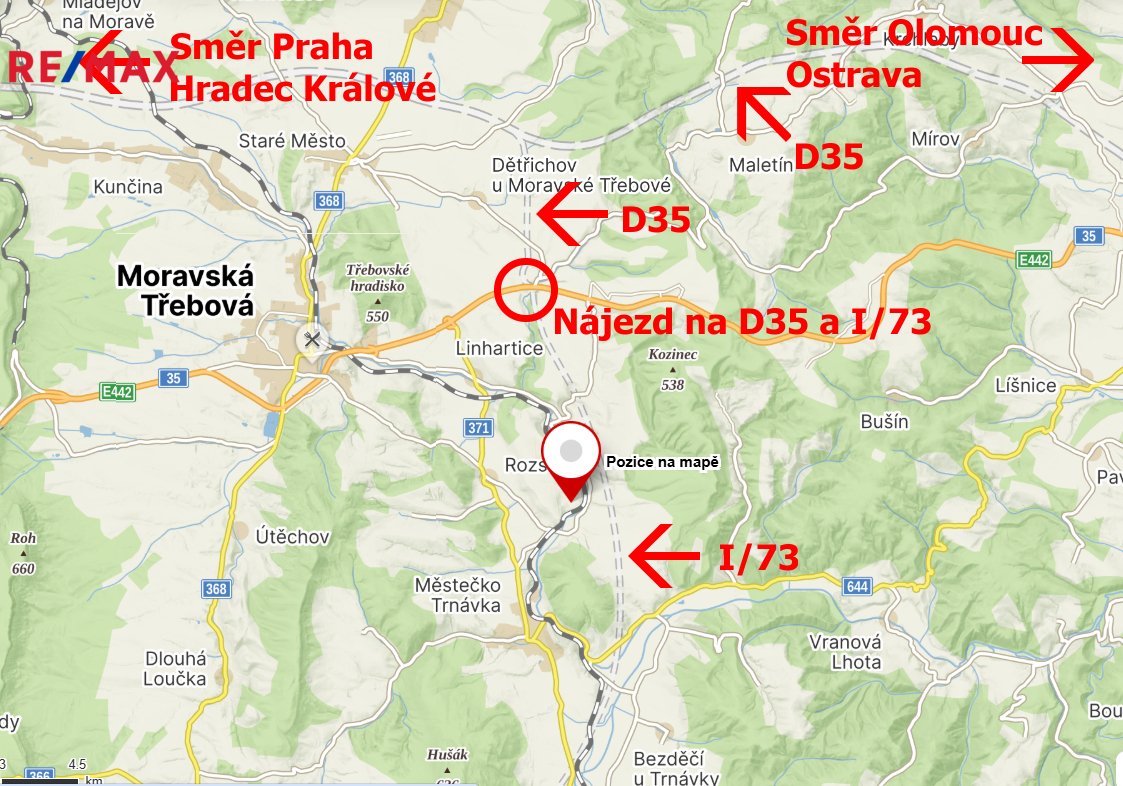 u Moravské Třebové. Areál se nachází blízko budoucího nájezdu na D35 a