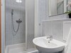 obývací prostor s kuchyňským koutem, koupelna se sprchovým koutem.