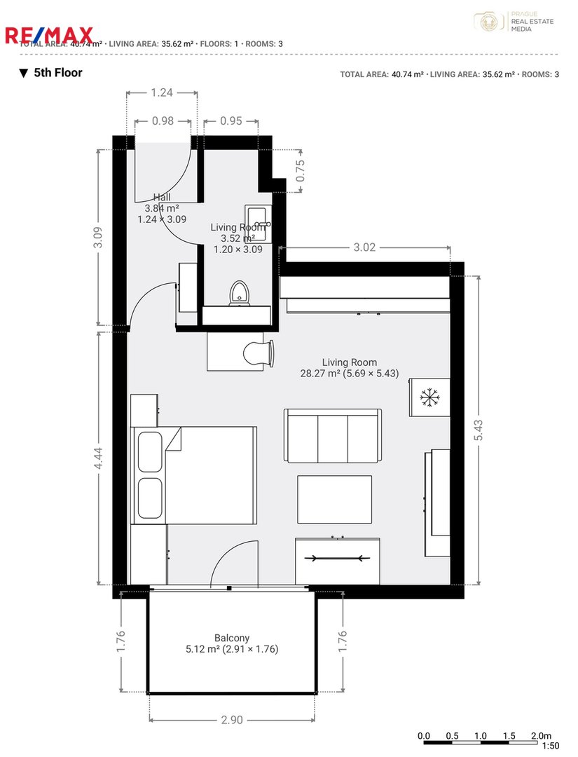 Součástí bytu je útulný balkon orientovaný na jihozápad, který nabízí
