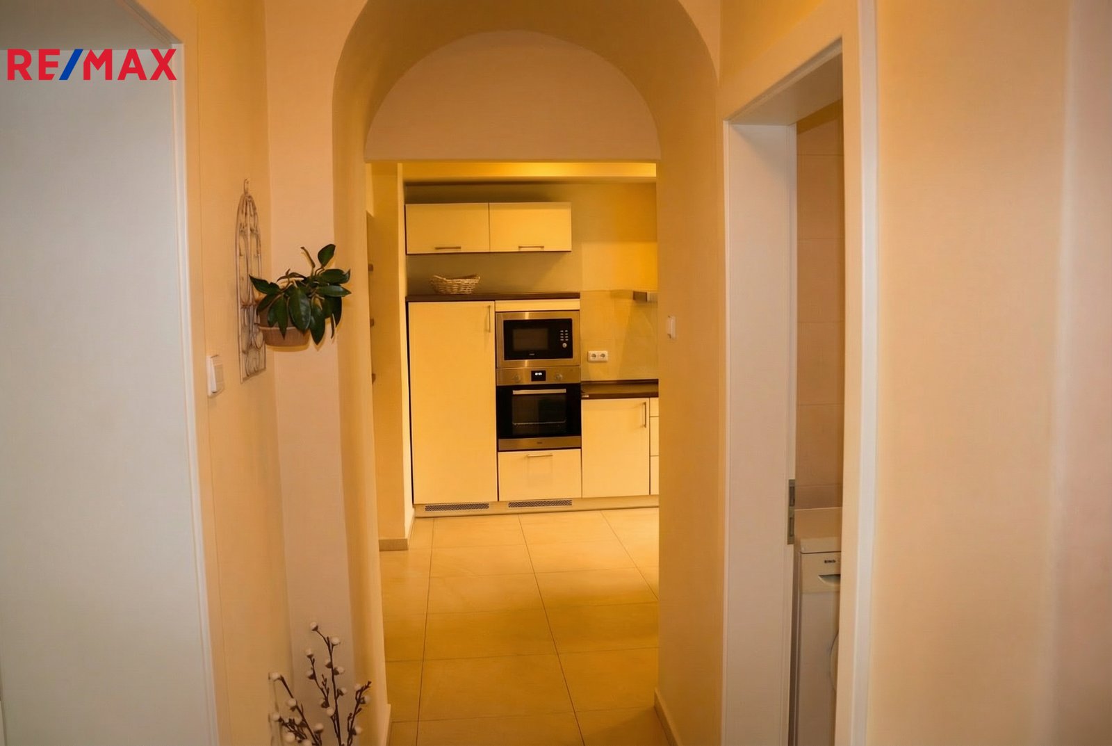 Tady máte k dispozici moderní linku s vestavěnými spotřebiči a dostatkem