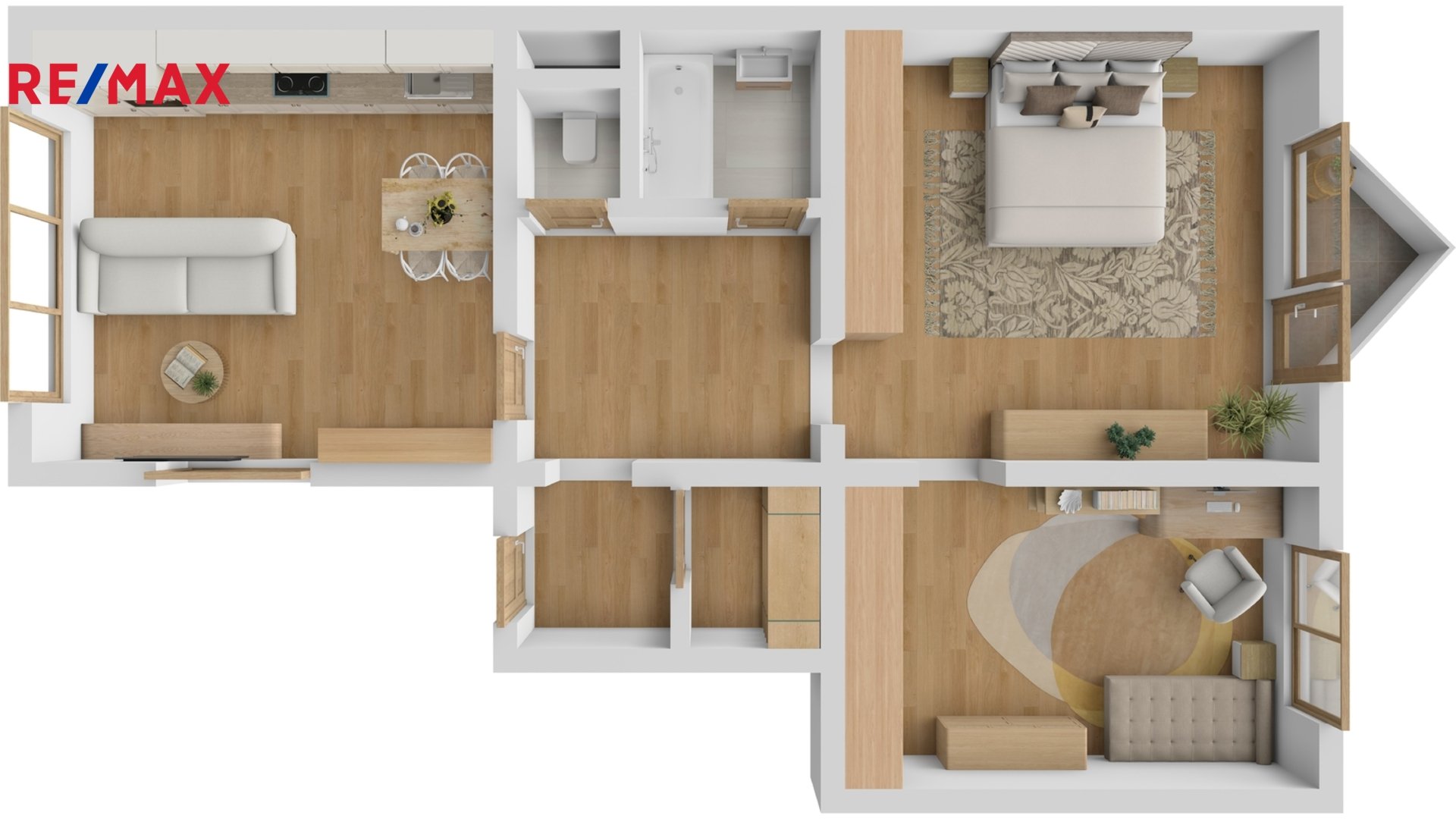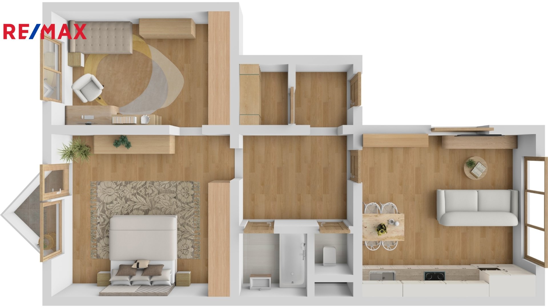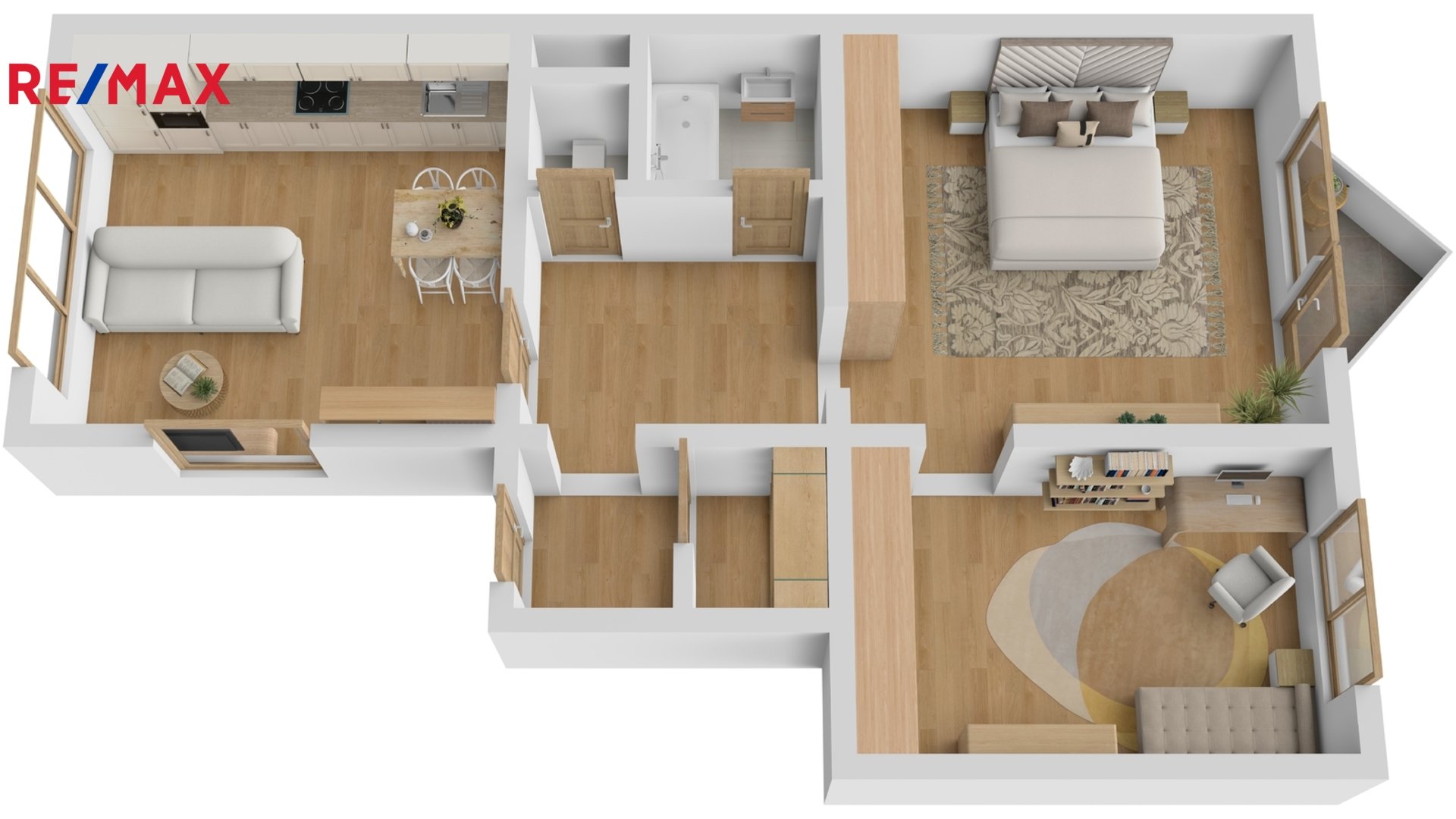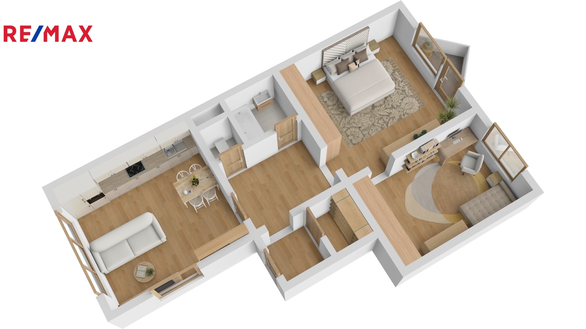 s dispozičním uspořádáním 3+kk a s celkovou výměrou 59m2, který se