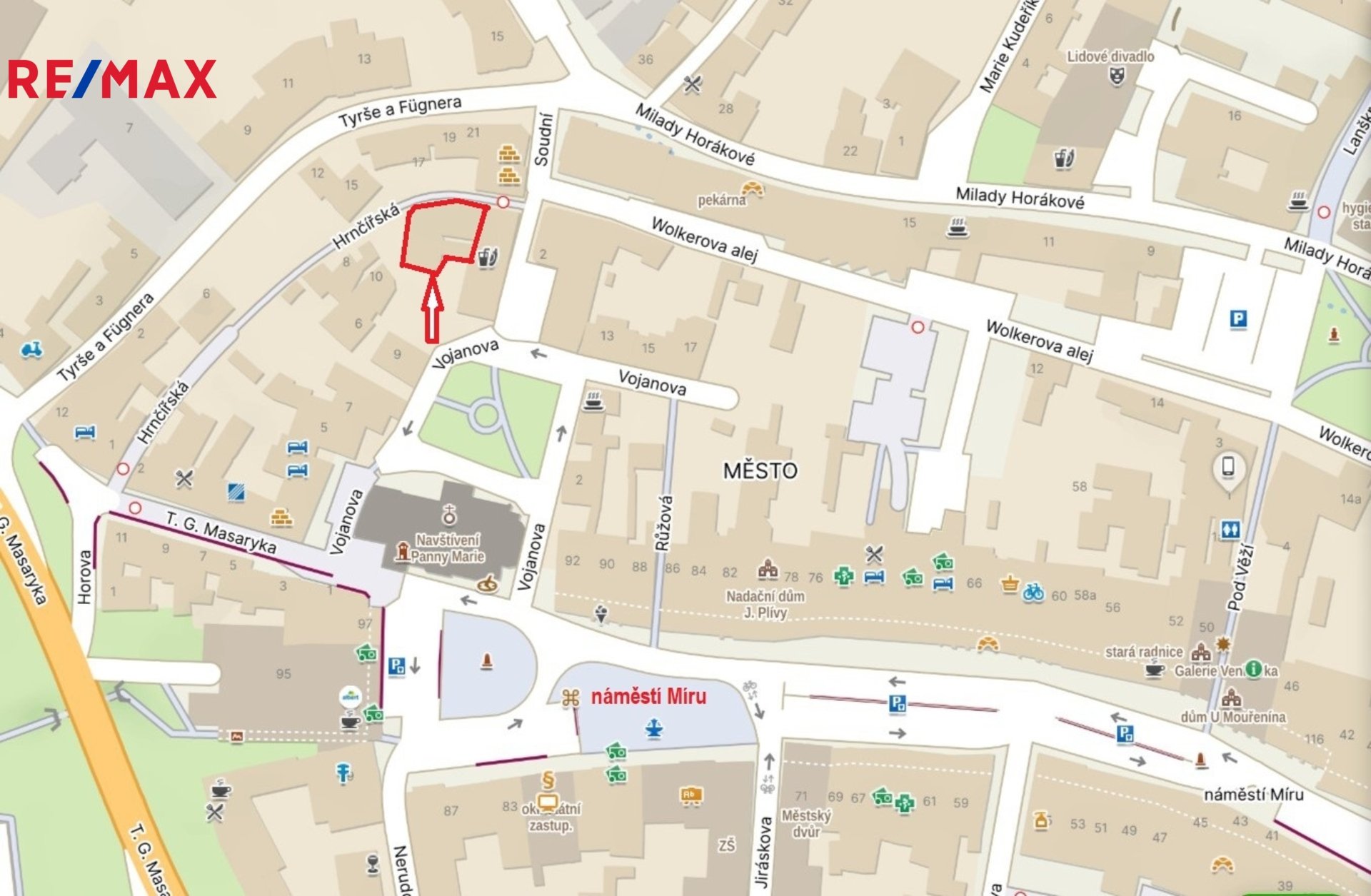 Nebytové prostory jsou přístupné přímo z ulice Soudní a Vojanovy zezadu