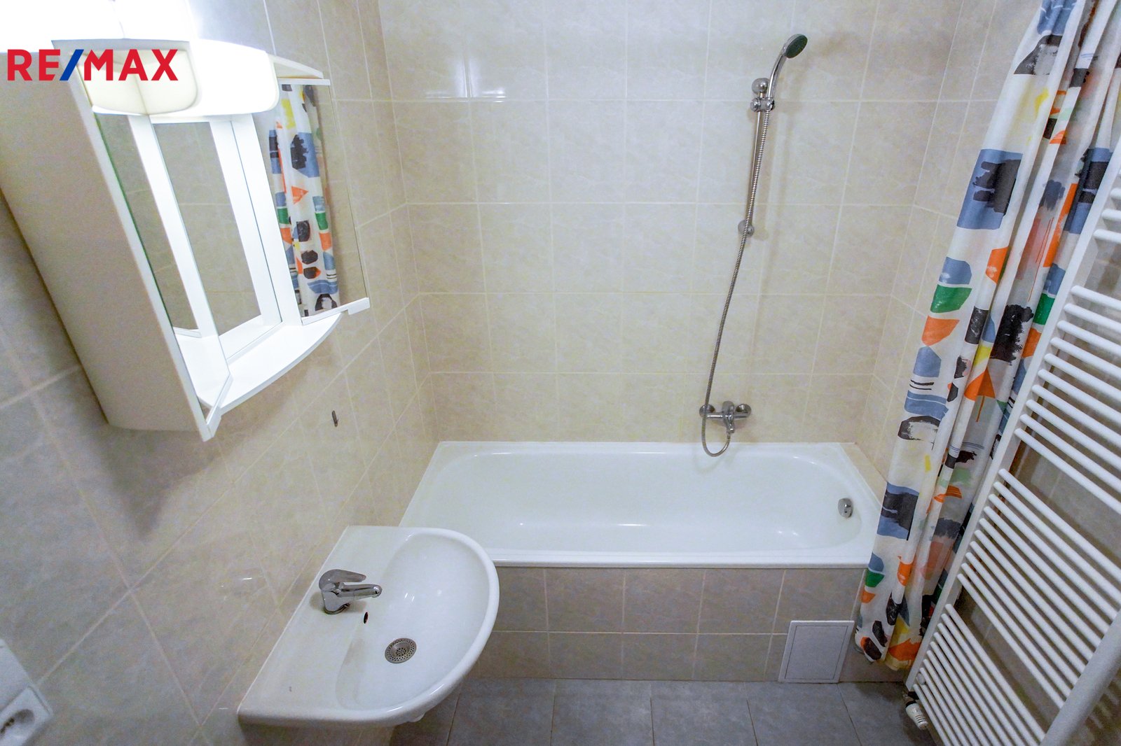 s mrazákem. V koupelně se nachází vana a pračka.