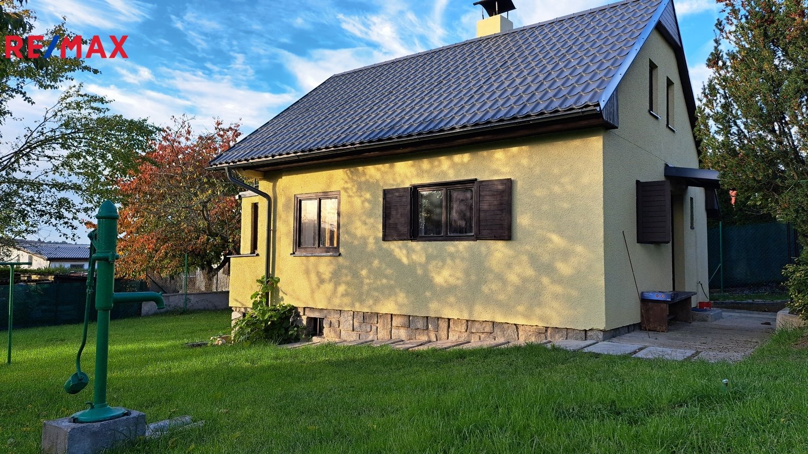 Rekreační chata nebo trvalé bydlení 87,6m2, blízko Prahy, zděná, po rekonstrukci 2025, zahrada 353m2
