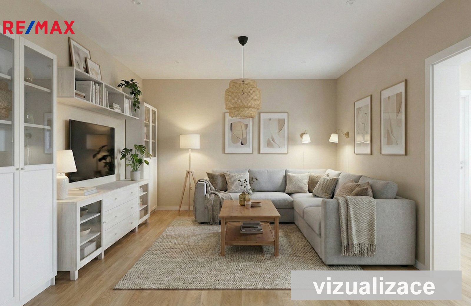 Fotografie skutečného stavu nemovitosti jsou doplněny o vizualizace, které