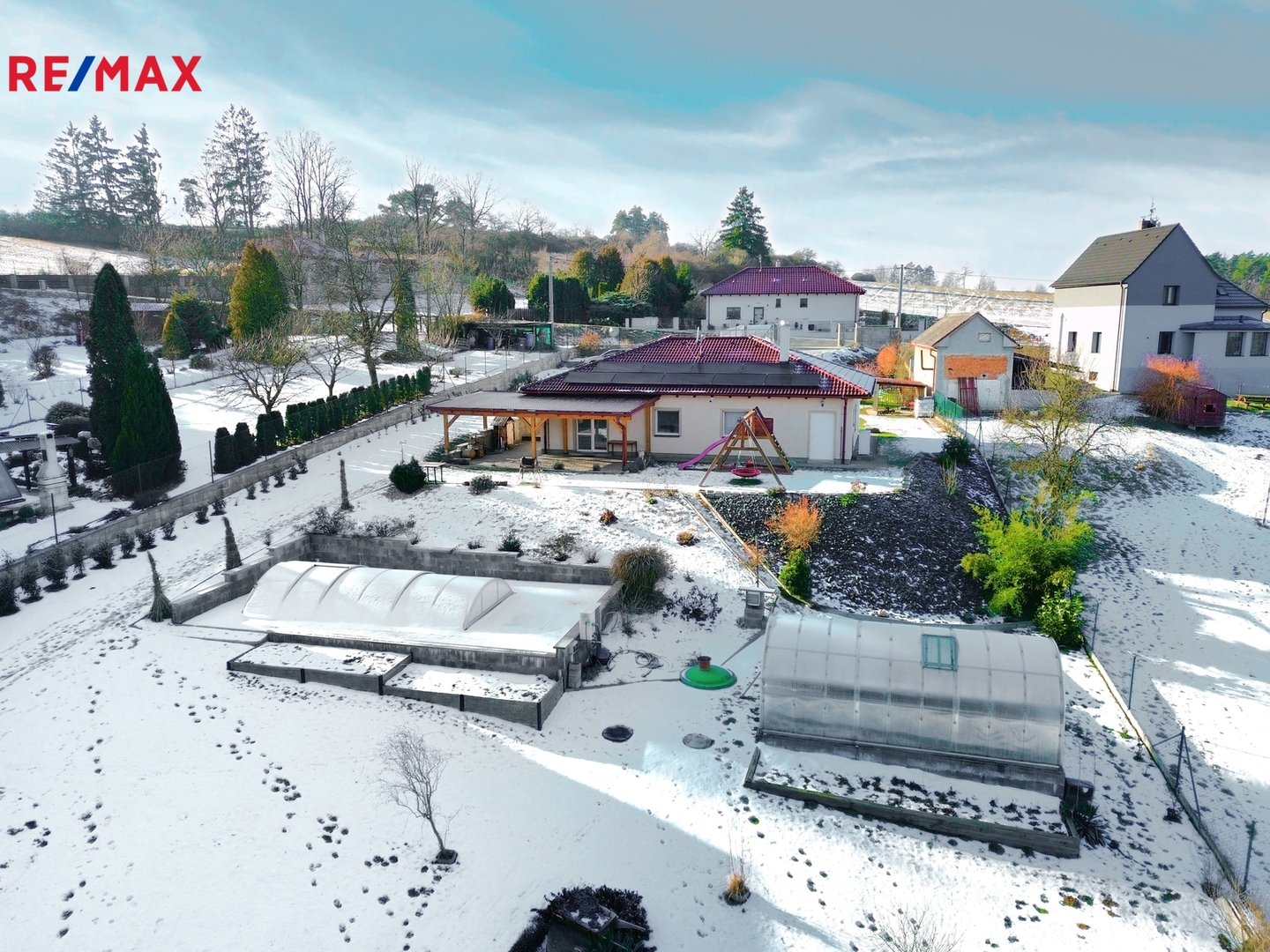 Rodinný dům 5+kk, 108 m², pozemek 3 066 m², fotovoltaika, krytý vyhřívaný bazén – Libež