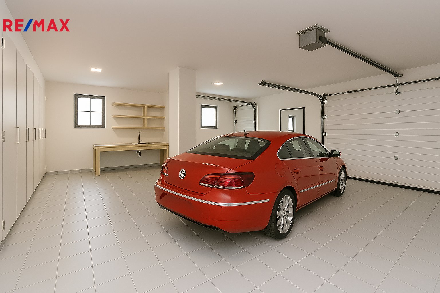 (64 m²), se dvěma sekčními vraty. Garáž zároveň nabízí další