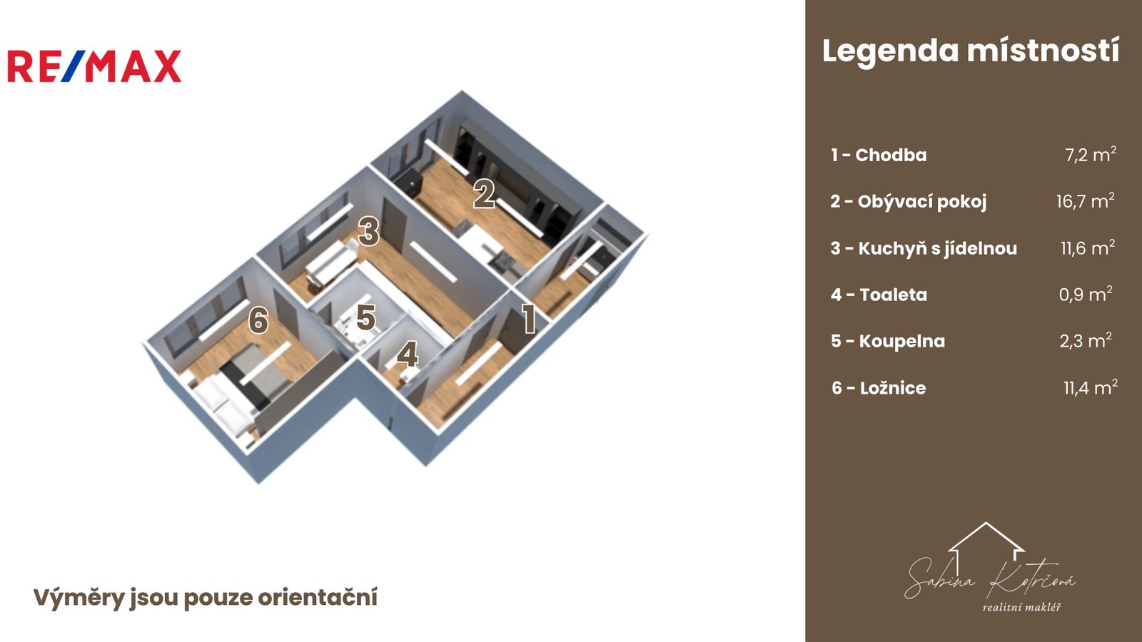 výměře téměř 54 m² s balkonem o velikosti přibližně 5 m², který