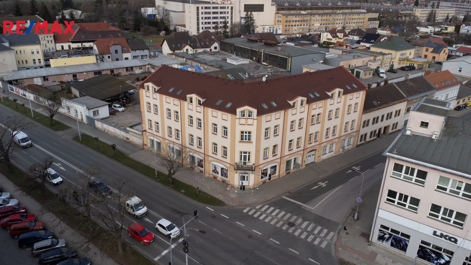 přibližně 68 m², který se nachází ve 3. podlaží cihlového domu