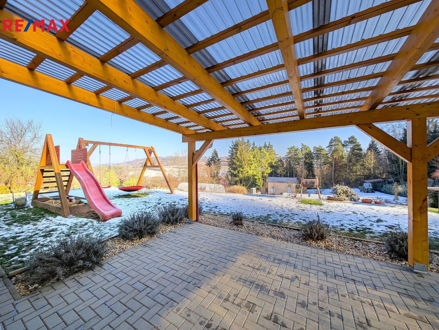 Pozemek je svažitý se sklonem k východu, oplocený a poskytuje vysokou míru