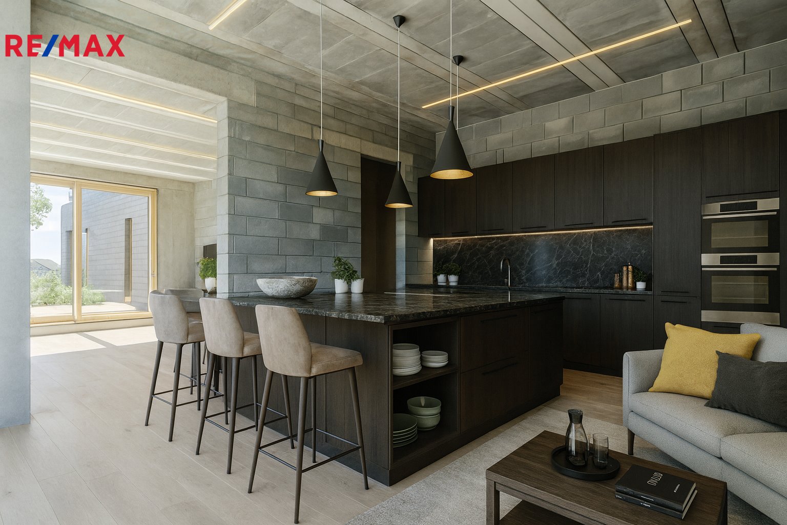 • Kvalitní přírodní materiály – beton, dřevo, omítka